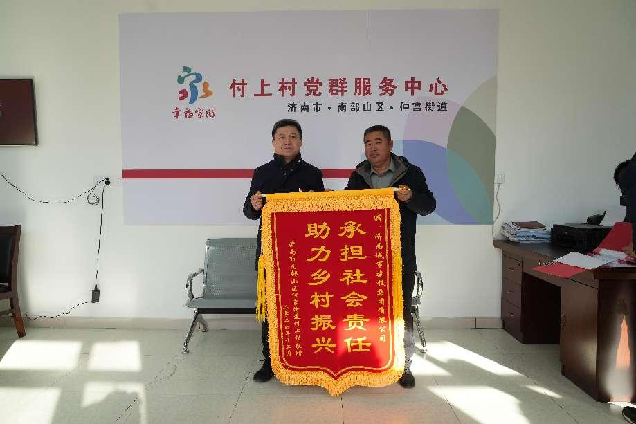 活動中,建設集團黨群工作部與山東省市政行業協會聯合開展“黨建引領聚合力 村企共建促發展”主題黨日活動,聽取付上村發展現狀介紹,了解派駐第一書記工作開展情況,查看付上村路燈、黨群服務中心等幫扶建設成果,付上村向建設集團和山東省市政行業協會贈送錦旗。