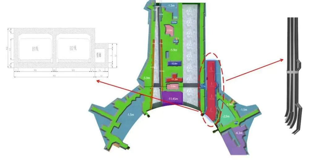 濟(jì)南遙墻機(jī)場二期改擴(kuò)建工程T2航站樓項(xiàng)目8號下穿通道首段主體1400立方米混凝土澆筑完成,標(biāo)志著項(xiàng)目建設(shè)取得階段性勝利。由濟(jì)南國際機(jī)場建設(shè)有限公司投資建設(shè)的濟(jì)南遙墻機(jī)場二期改擴(kuò)建工程8號下穿通道位于T1航站樓西北側(cè),南北向橫穿正在建設(shè)的濟(jì)南遙墻機(jī)場T2航站樓,連接南、北工作區(qū),可以實(shí)現(xiàn)工作區(qū)車輛的南北街接,全長245米,采用雙倉分建和雙倉共建鋼筋混凝土結(jié)構(gòu),雙倉分建段尺寸標(biāo)準(zhǔn)段內(nèi)徑凈寬8.25米,凈高約7.2~7.5米,底板厚度1.2米,頂板厚度0.7米,中墻厚0.8米,側(cè)墻厚1.0米。8-1通道主體涉及高支模超危大工程,墻體厚、高度寬度均漸變、圓弧線性,橫穿8條斜交梁,多處異型柱,與中建三局八局預(yù)留預(yù)埋交叉施工,結(jié)構(gòu)復(fù)雜,施工難度大。自項(xiàng)目啟動以來,項(xiàng)目部秉持精益求精的態(tài)度,攻堅(jiān)克難,順利完成8號下穿通道首段主體澆筑節(jié)點(diǎn)目標(biāo)。