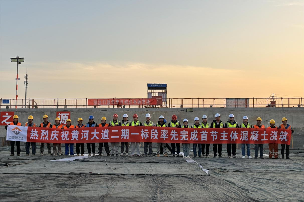 濟(jì)南黃河大道二期工程施工一標(biāo)段率先完成首節(jié)主體混凝土澆筑。黃河大道二期工程首節(jié)主體長35米,寬30.3米,高9.2米,由底板、側(cè)墻、頂板三部分組成,所用材料主要為C40補(bǔ)償收縮混凝土,抗?jié)B等級P10。為了保障主體混凝土澆筑質(zhì)量與進(jìn)度,項(xiàng)目部周密策劃組織施工,積極落實(shí)澆筑技術(shù)質(zhì)量安全交底,統(tǒng)籌調(diào)配人材機(jī)配置與進(jìn)場,鉚足干勁、團(tuán)結(jié)協(xié)作,順利完成首節(jié)主體混凝土澆筑。作為濟(jì)南新舊動能轉(zhuǎn)換起步區(qū)的重點(diǎn)項(xiàng)目,首節(jié)主體澆筑是黃河大道二期工程建設(shè)的又一重要工程節(jié)點(diǎn)。