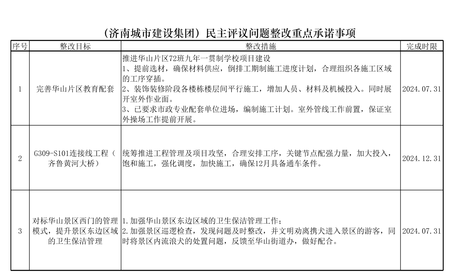 (濟南城市建設集團)民主評議問題整改重點承諾事項