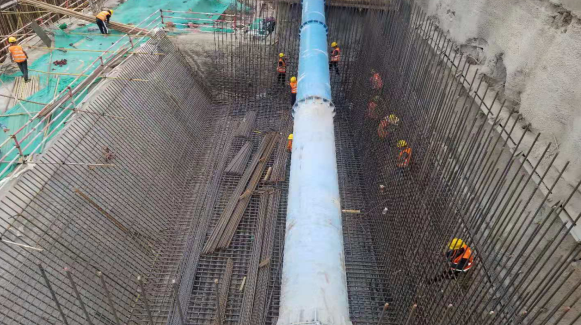 施工中,構建土建BIM模型及機電部分BIM節點模型,提升工作效率。同時,工程采用BIM+基坑計算對部分受力復雜區域進行方案驗證及優化,在樁號K7+560雨水泵房處,采用BIM+里正深基坑計算對原設計方案進行優化,由原基坑支護形式為兩道鋼支撐改為采用一道鋼管內支撐的支護形式,優化方案保證了雨水泵房整體施工的要求。