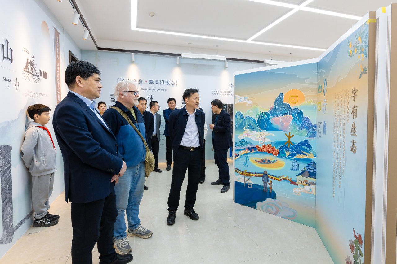 為更好地學習和傳播漢字文化,讓文字永遠保持旺盛的生命力,楊柳春風學校創辦漢字文化體驗展廳,王志國、韓軍共同為漢字文化體驗展廳揭牌。