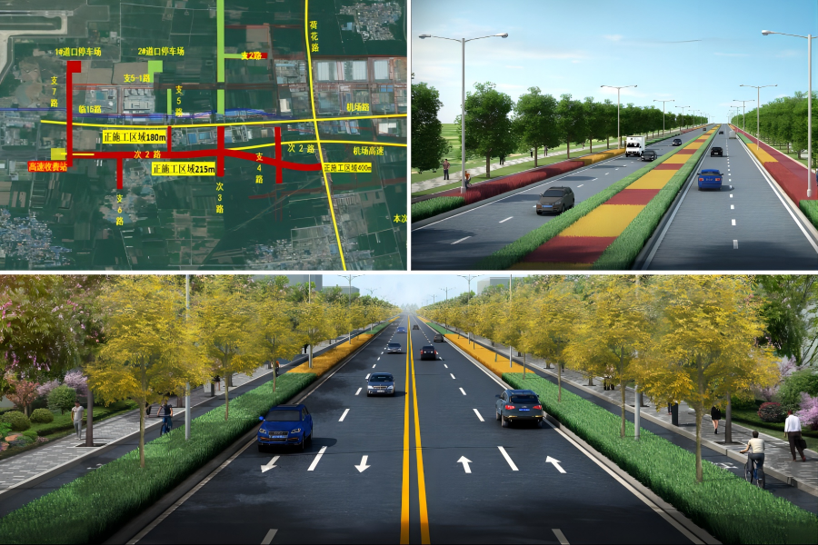 濟南遙墻機場二期改擴建工程城市道路工程是連接遙墻機場與濟南主城區的重要通道,也是連接臨空片區和臨港片區的關鍵道路群,包含南主進出場路高架及地面道路工程等施工內容。本次驗收的濟南遙墻機場二期改擴建工程首批城市道路工程包含次3路、支2路、支5路、支5-1路共4條道路,道路長2.8公里,道路紅線寬30~50米。