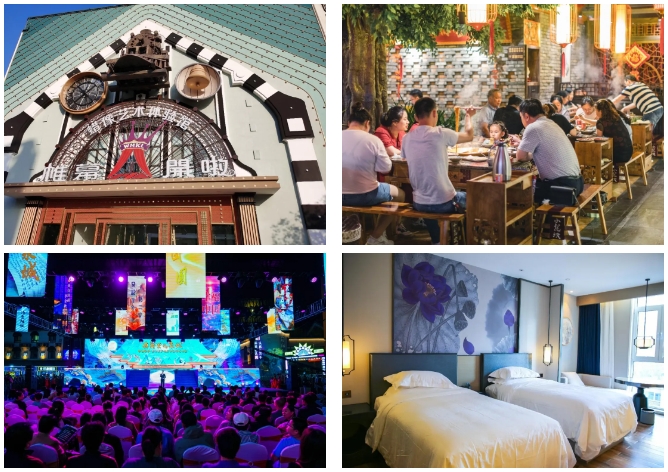 同時(shí),印象濟(jì)南·泉世界通過(guò)展示商埠文化的“潮范東樓”、市井坊間文化的“格調(diào)西坊”以及鄉(xiāng)土記憶的“風(fēng)情北苑”形成“品”字型景觀布局,推動(dòng)整個(gè)街區(qū)的文化與旅游融合發(fā)展。另外,街區(qū)與山東國(guó)際會(huì)展中心處西部大商圈內(nèi),街區(qū)內(nèi)的餐飲與住宿商戶(hù)在濟(jì)南西部會(huì)展業(yè)的提檔升級(jí)方面起到直接推動(dòng)作用,方便了創(chuàng)業(yè)者的業(yè)務(wù)洽談,尋找創(chuàng)業(yè)新機(jī)遇。