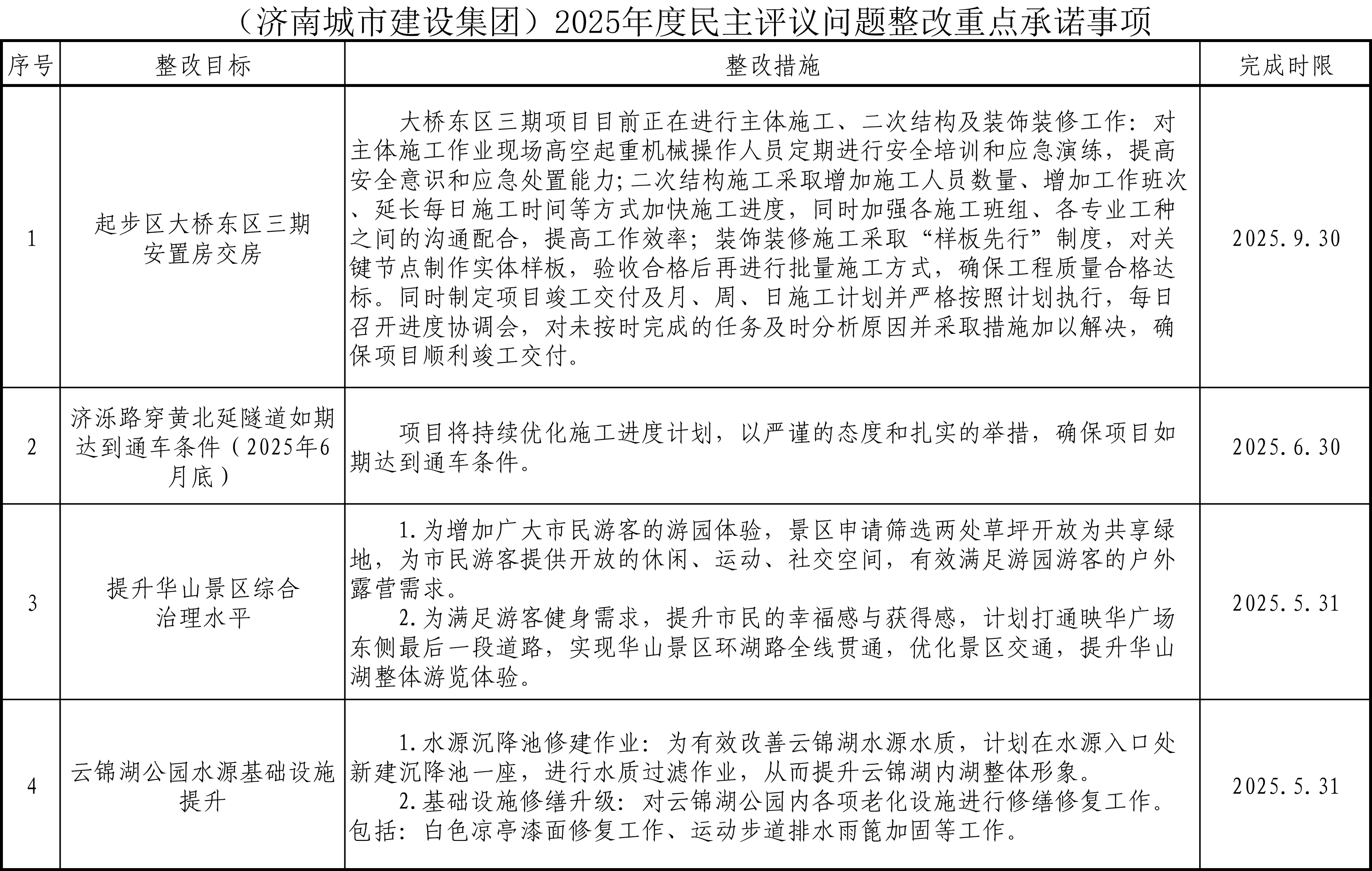 (濟南城市建設集團)民主評議問題整改重點承諾事項