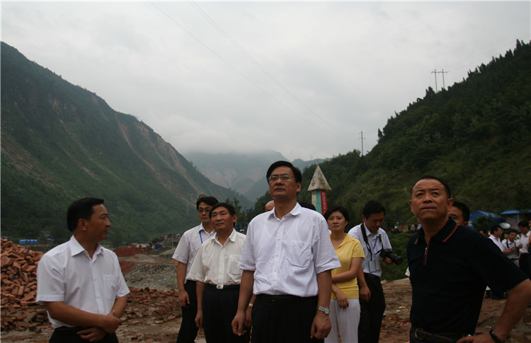 2008年6月,時任山東省委書記、省人大常委會主任姜異康(右一)到擂鼓鎮視察抗震救災工作